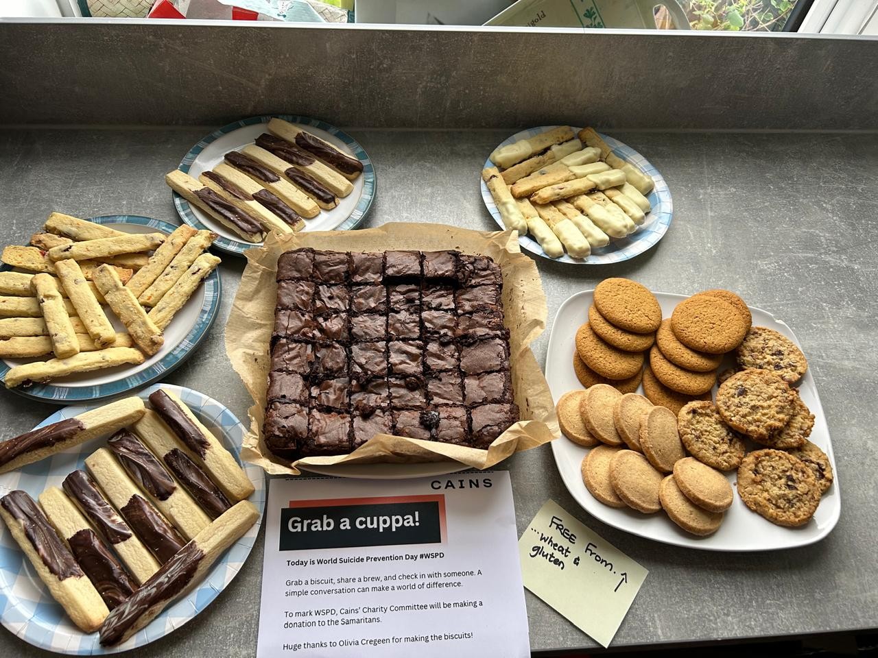 Cains’ Charity Committee will be donating to the Samaritans to mark WSPD. Thanks to our baking enthusiast, we encouraged our team to grab a home-made biscuit and check in with a colleague.