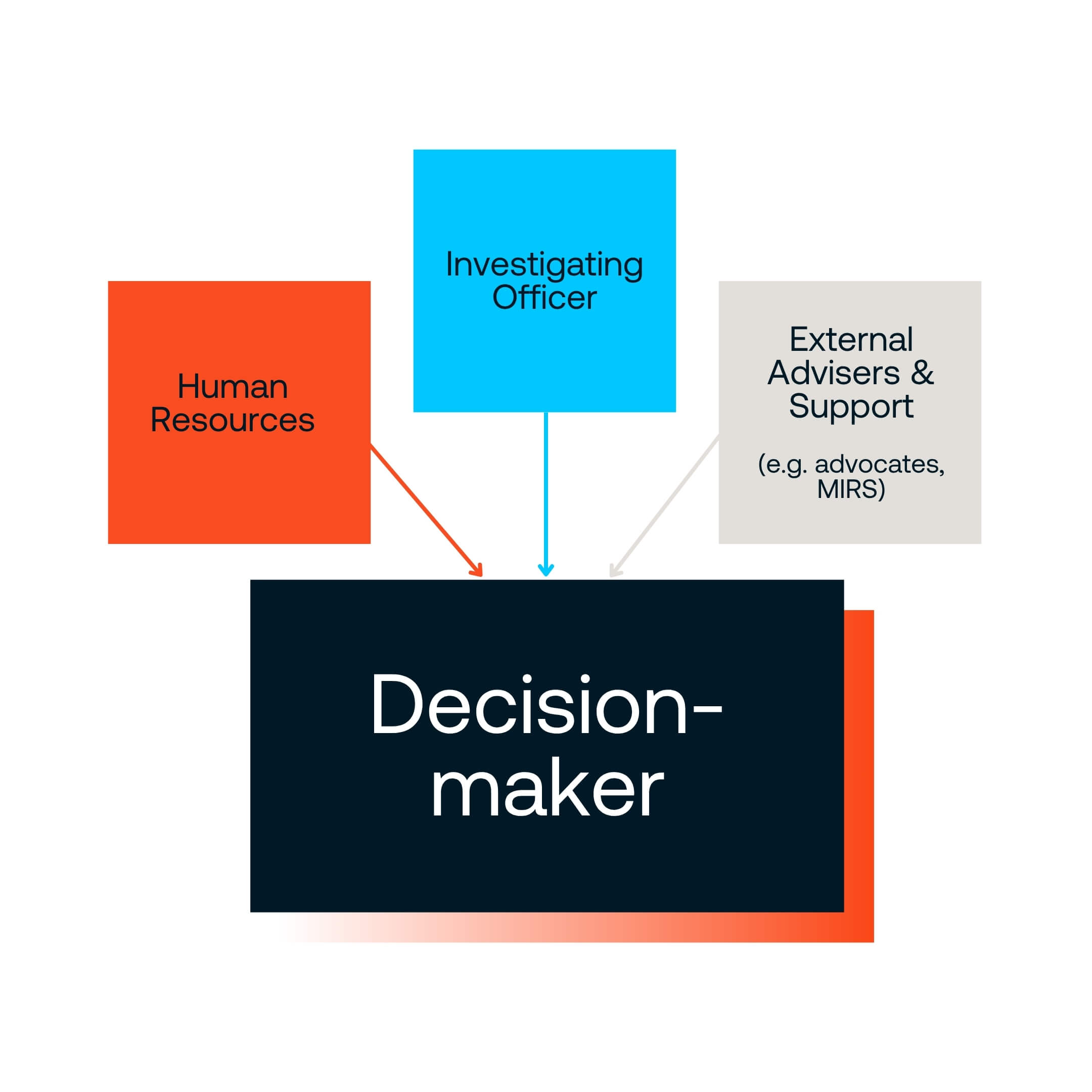 The decision maker (sometimes referred to as the “commissioning officer”) will generally be a member of the senior management team. Their main role in the process commences once any disciplinary investigation is concluded and the IO presents their findings. Whilst the IO should report on facts and may venture an opinion on whether there is a case to answer, the decision maker is usually responsible for deciding whether or not to proceed to a disciplinary hearing. The decision maker should therefore be impartial, free of involvement with the facts of the matter, not have any conflicts of interest, have suitable training and may need expertise in (or at least an awareness of) the underlying subject matter of the allegation(s) if they involve technical points. Disciplinary allegations involving data protection issues or compliance breaches, for example, would particularly benefit from the input of someone with an understanding of, or qualifications in, data protection and compliance respectively. Independence, however, should be the key driver to appointing a decision maker; this is because the independence of the decision maker goes to the heart of whether or not a process is considered fair.