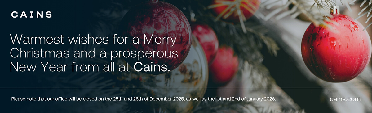 Wishing you a Merry Christmas & a prosperous New Year from all at Cains.